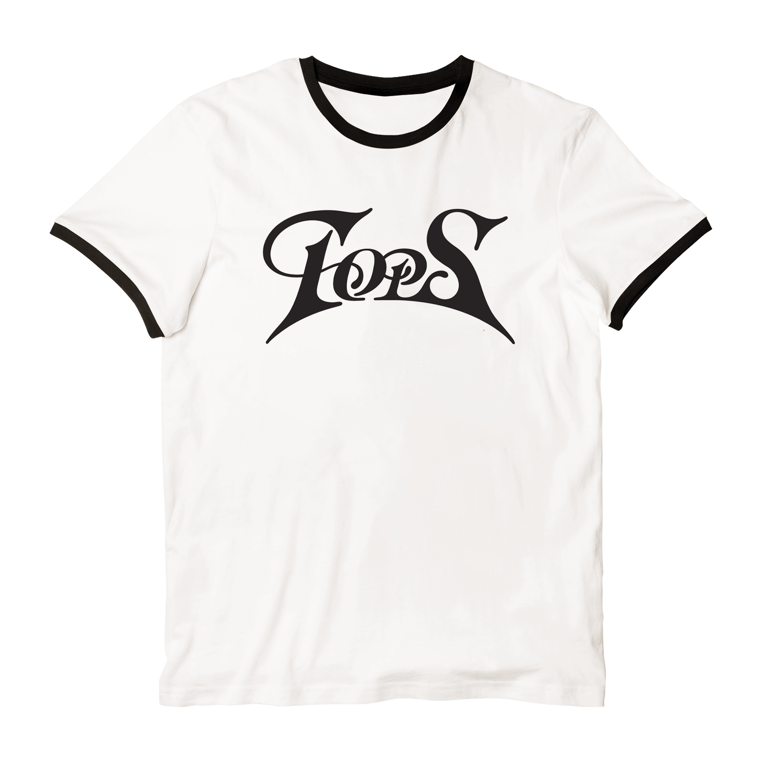 100% short sleeve vintage white ringer tee with black trim and black screenprint