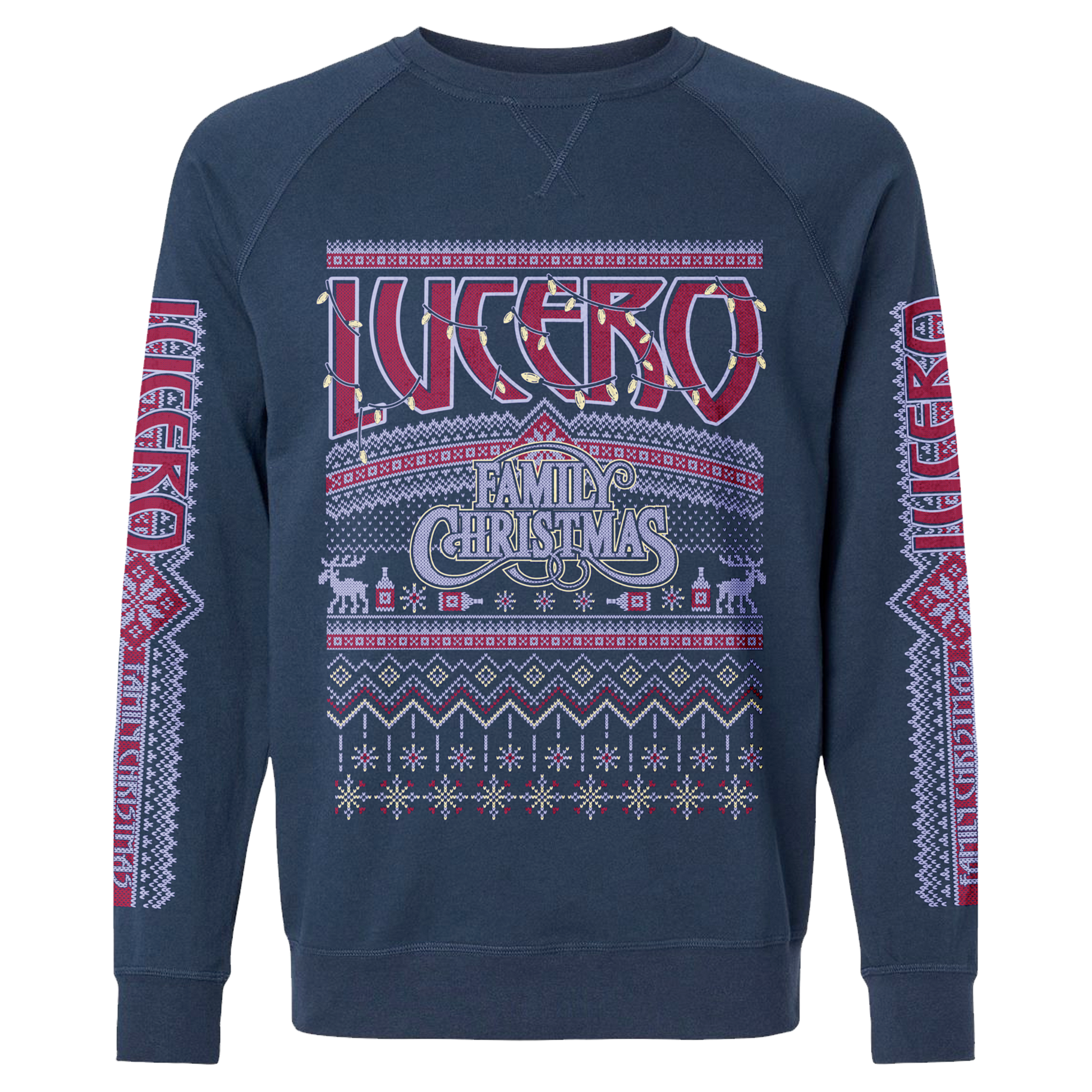 Navy pullover raglan crewneck with front print and sleeve prints 60/40 cotton-poly blend PRE-ORDER CUSTOMERS: Orders are expected to begin shipping the week of November 17, 2023. Any items purchased with this pre-order will not ship until the week of November 17, 2023 as well. All items are mockups and final product may vary slightly.