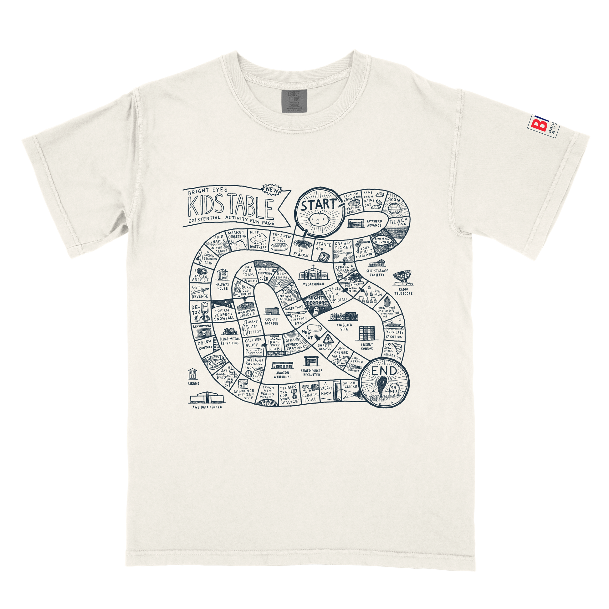 Screen printed on a 100% cotton, garment dyed Comfort Colors t-shirt.