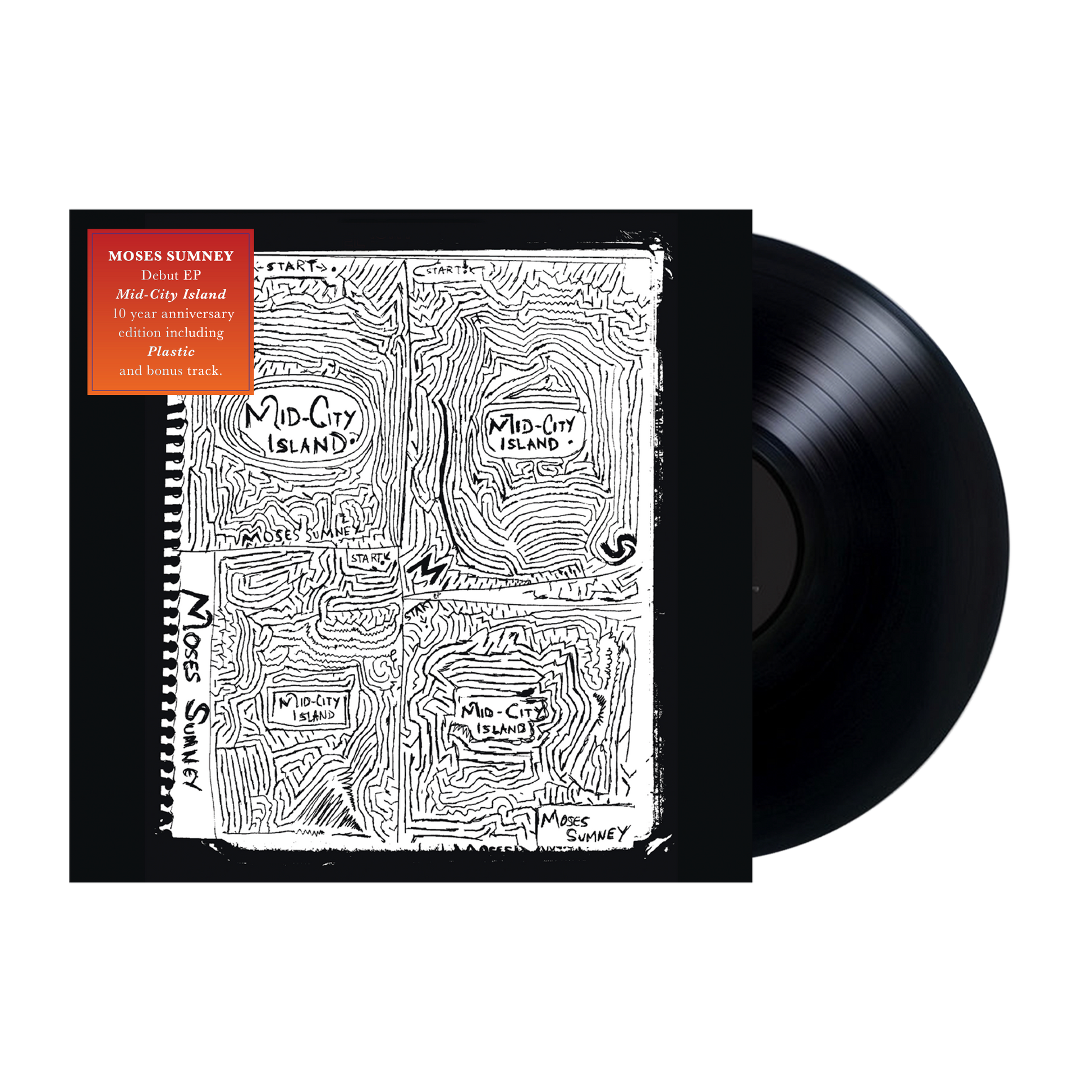 Limited edition, 10 year anniversary, first-ever vinyl pressing of Moses Sumney’s debut EP, Mid-City Island on classic black vinyl.