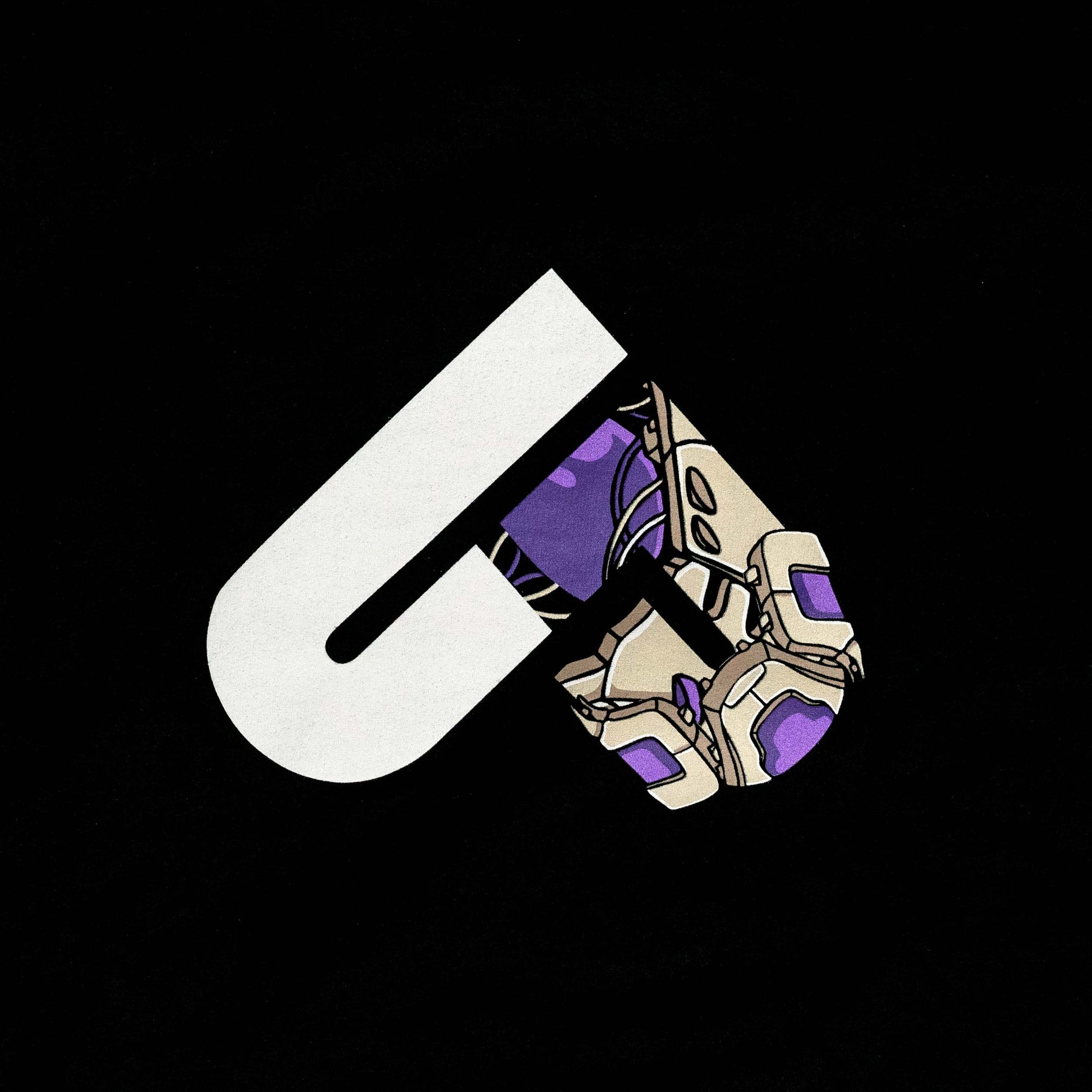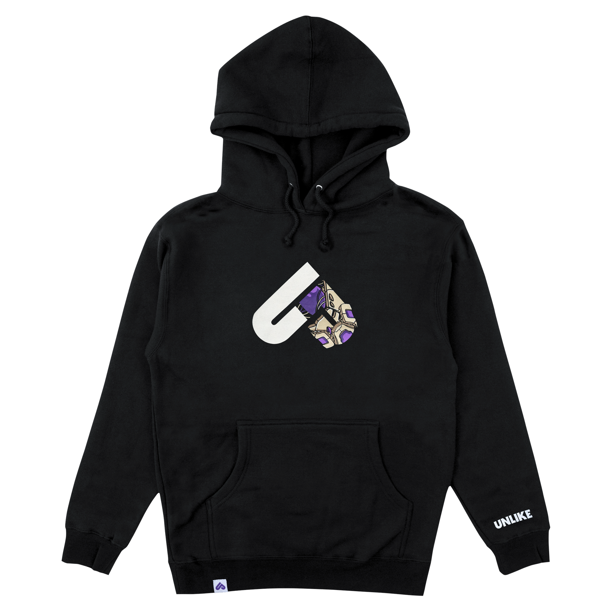 Pullover hoodie with front chest screen print and left wrist print.